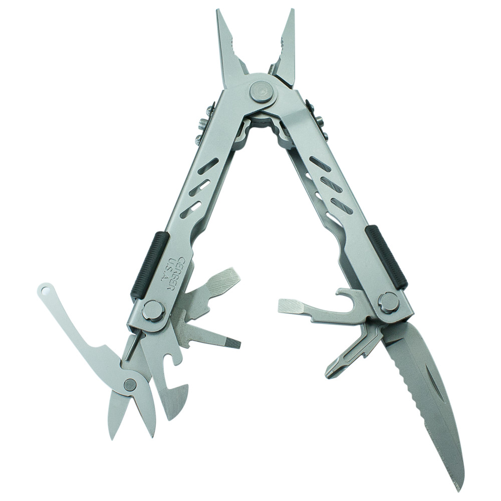 Svi se alati naravno mogu zaključati. Da bi se otvorila, glava kliješta jednostavno se gurne naprijed u radni položaj. Uz zaobljene noge kliješta, alat udobno leži u ruci. Oštrica duga 6 cm je opremljen oštrim djelomičnim ozubljenjem pile. Ostala oprema za alat sastoji se od škara, odvijača s prorezima u tri različite širine, Phillips odvijača, otvarača za boce i otvarača za konzerve. Za lakši transport uključena je crna najlonska futrola koja se može nositi na pojasu.